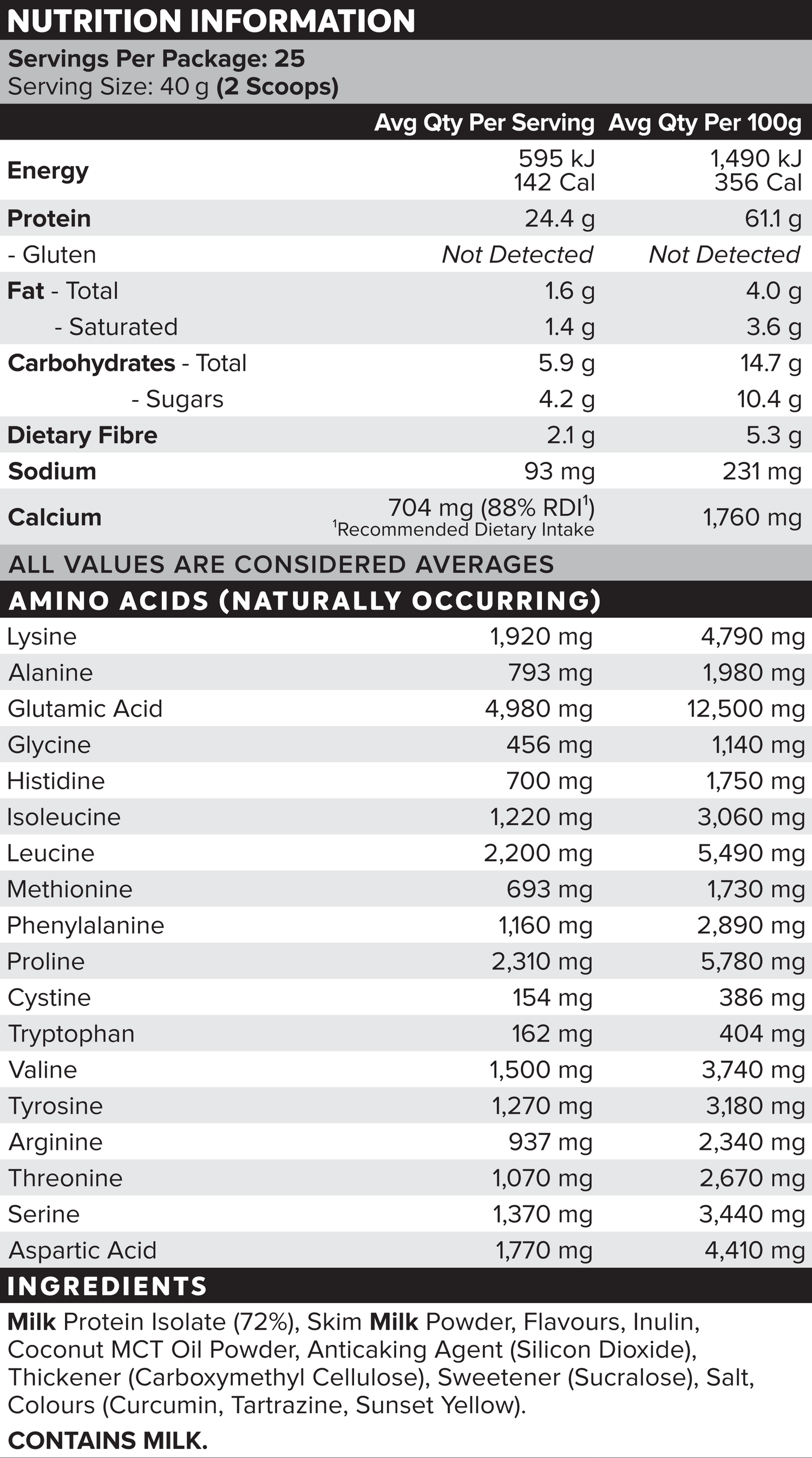 Ingredients + Nutrition Panel