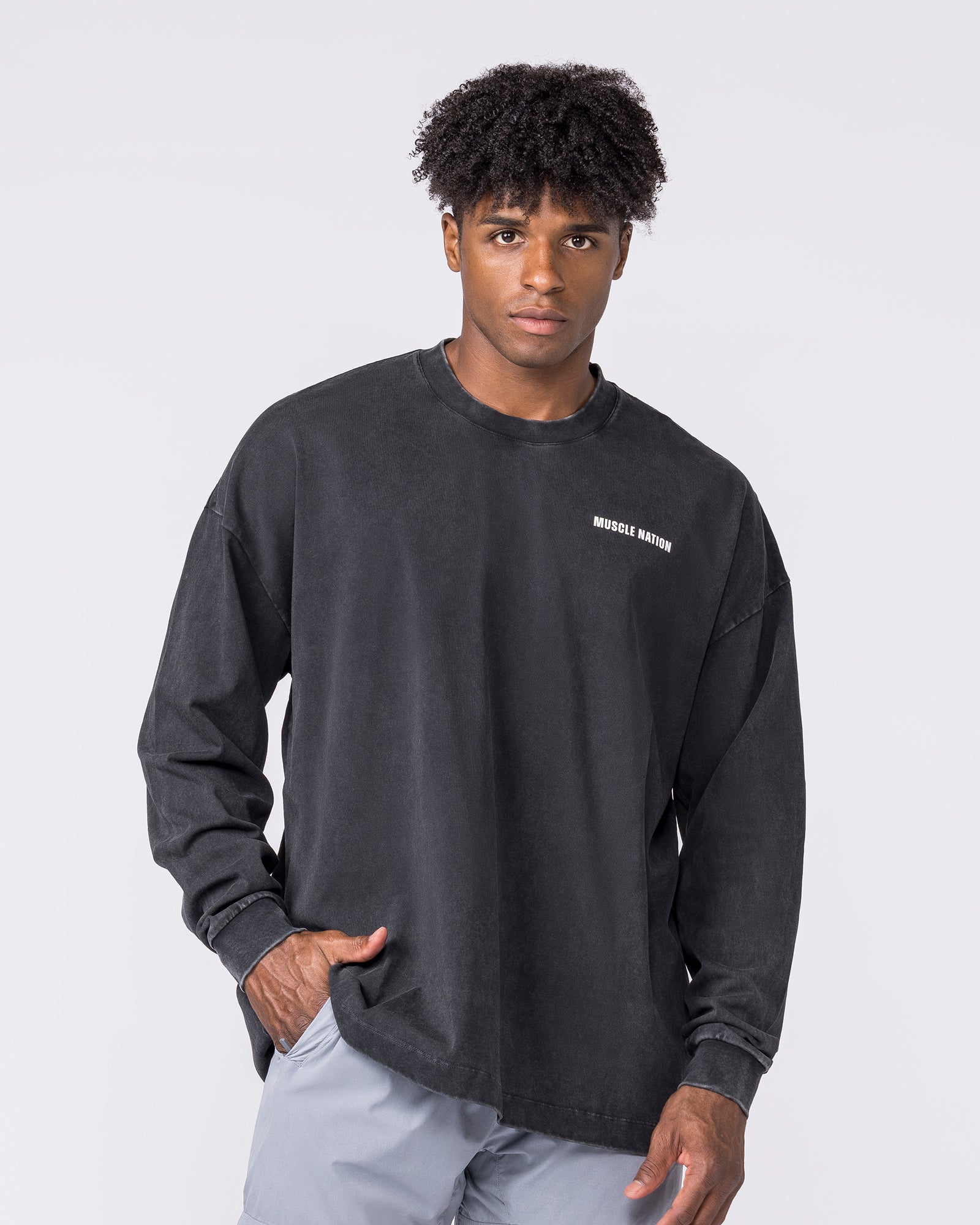 Essential Oversized Long Sleeve Vintage Tee - Washed Black