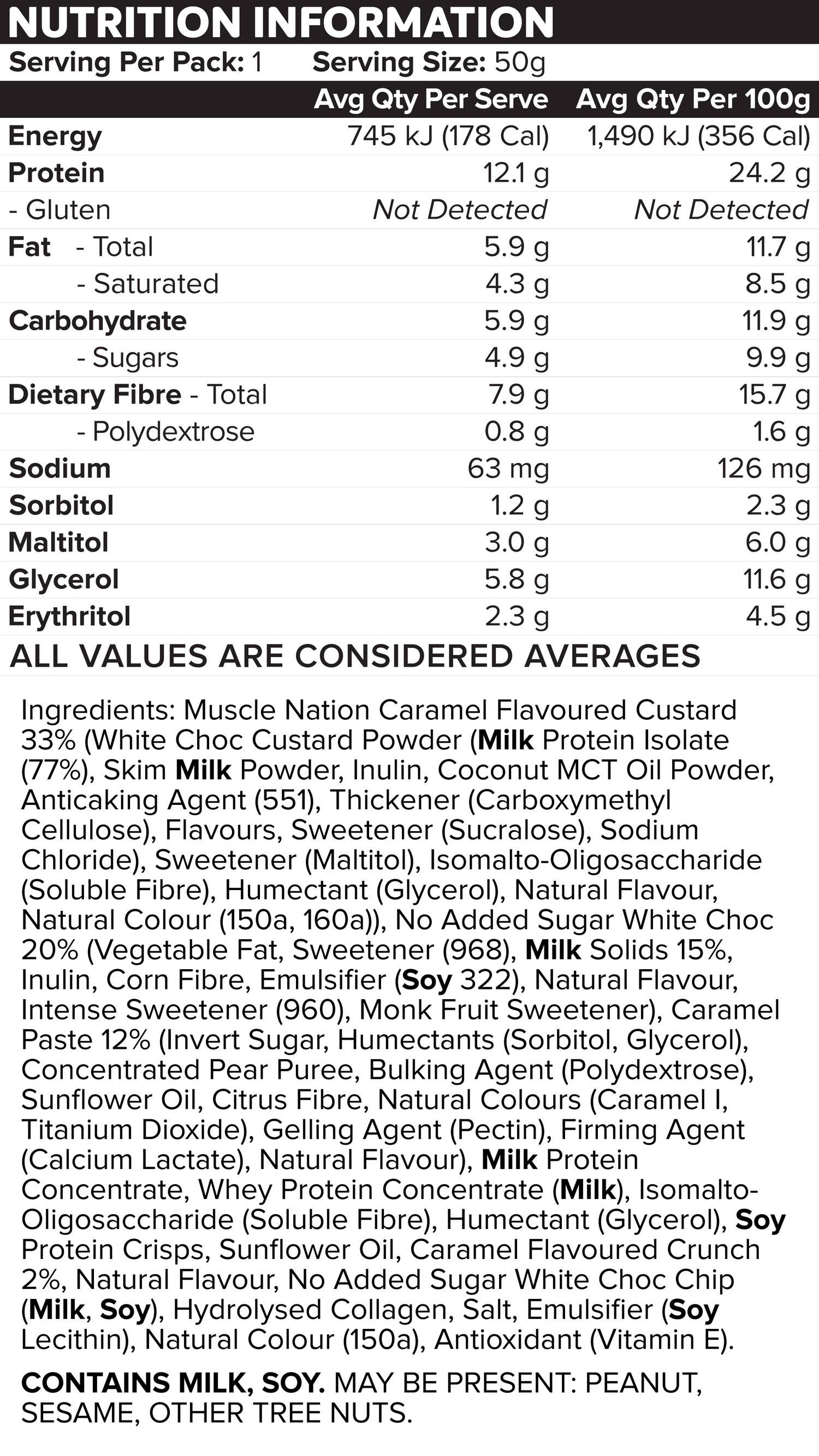 Ingredients + Nutrition Panel