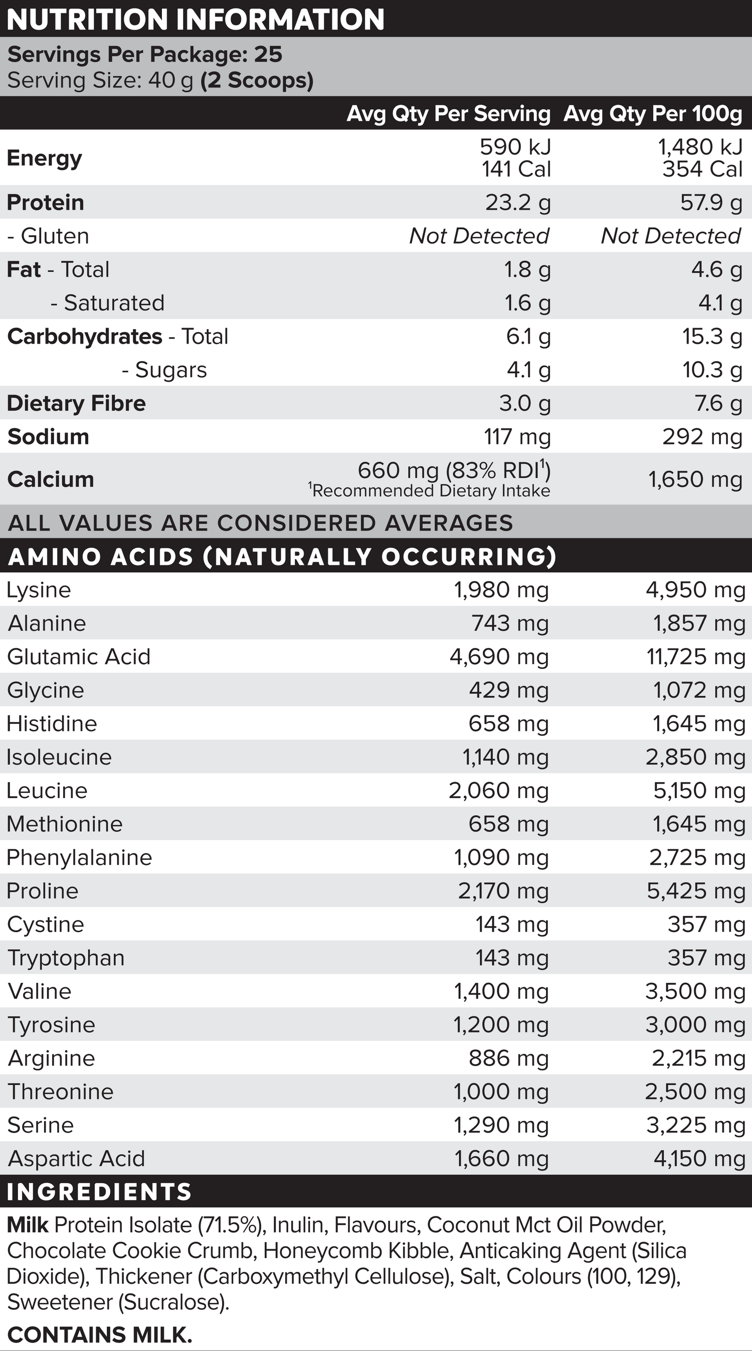 Ingredients + Nutrition Panel