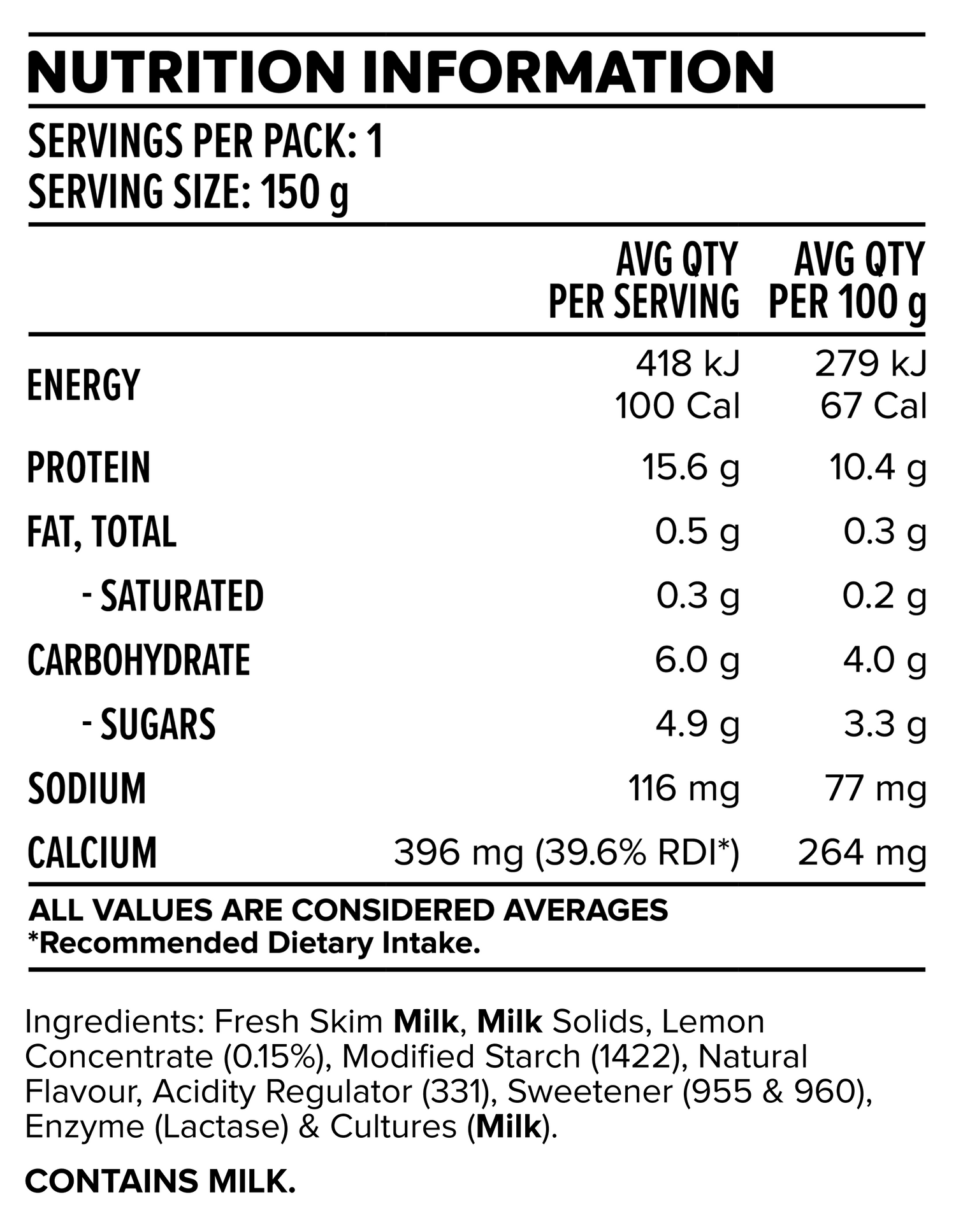Ingredients + Nutrition Panel